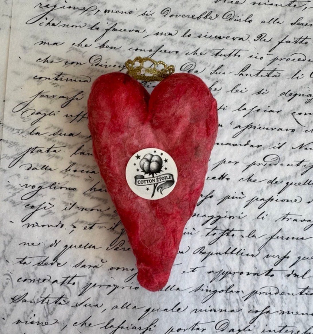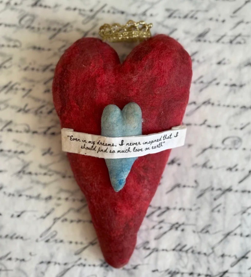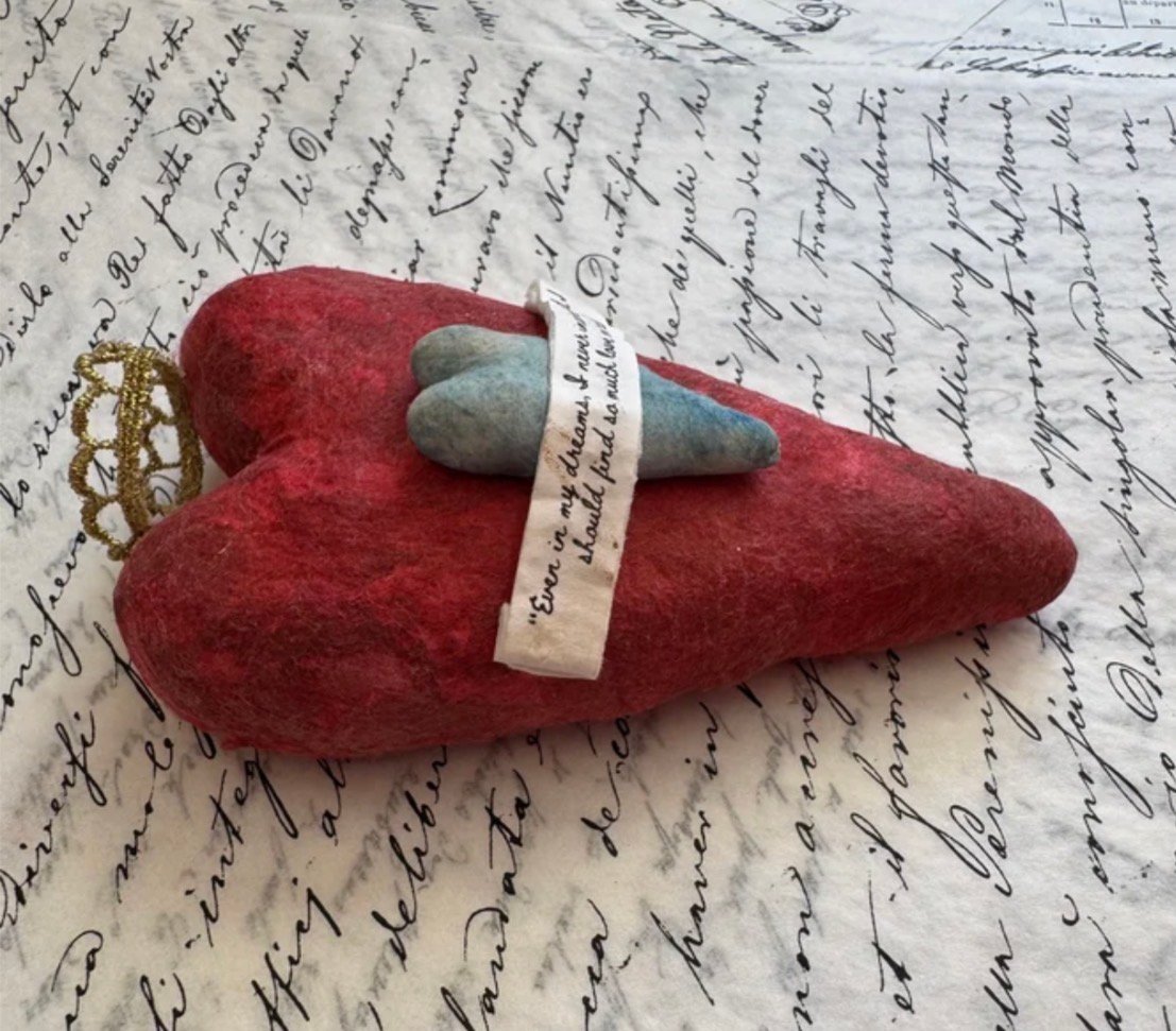 Prince Albert's swoon worthy quote is the banner to this spun cotton double heart creation made with Old World techniques and lightly aged.