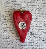 Measures approx 4.5" x 2.5" and is topped with a crown made from vintage trim.