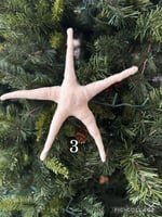 Handmade spun cotton Christmas star can be used as a tree topper, ornament, or on garland.