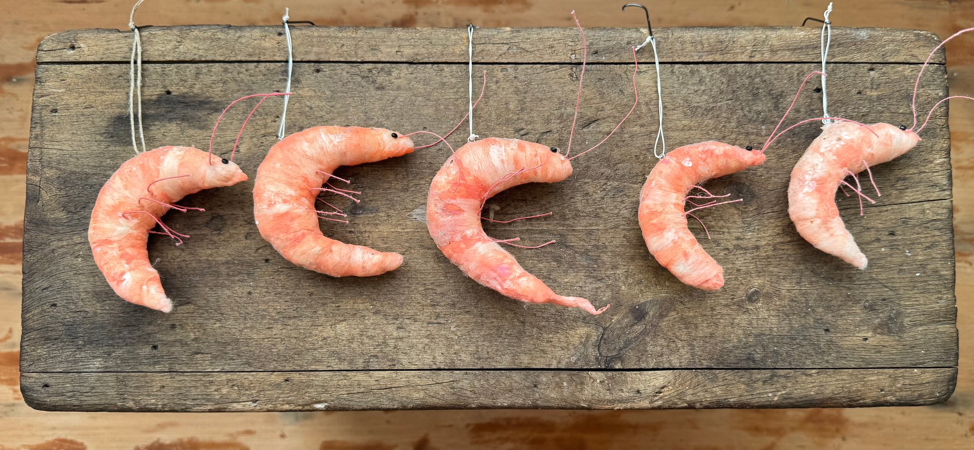 Spun cotton shrimp ornaments